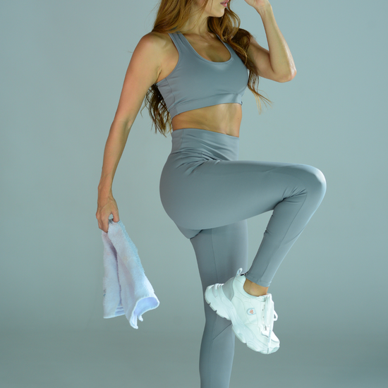 Leggin con cortes y pasador en pretina para toalla.