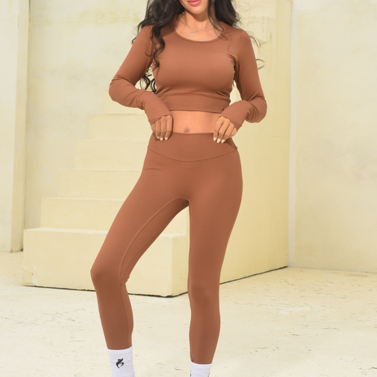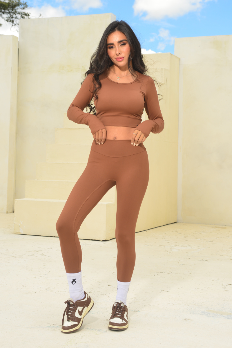 Leggin sin costura delantera y buzo con diseño en puños.