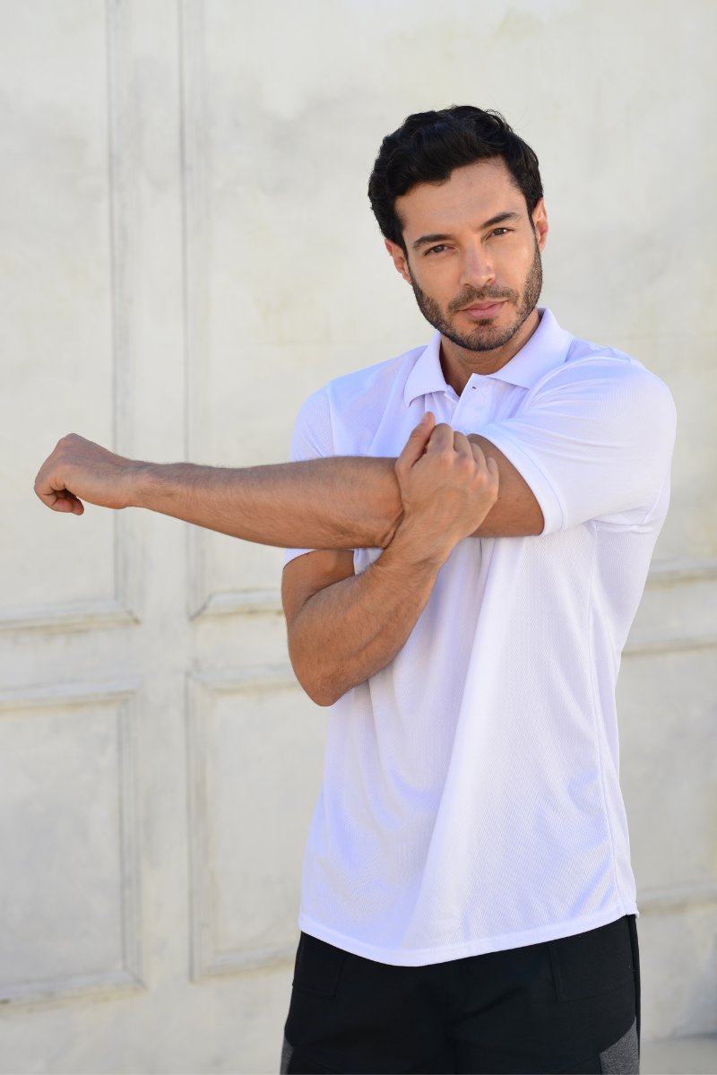 Camiseta polo deportiva.Silueta básicaTela poliéster 100%.